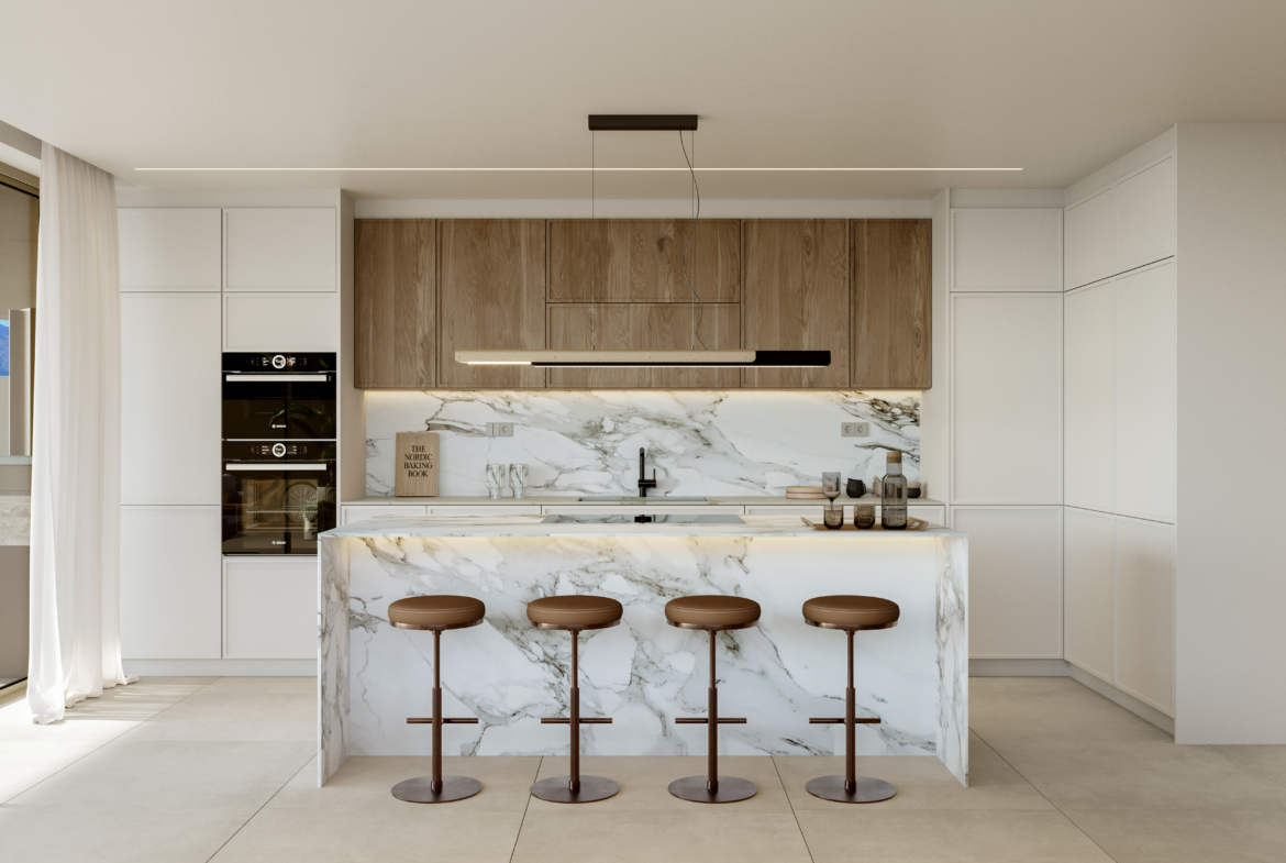 Wnętrza zostały zaprojektowane w duchu nowoczesnego minimalizmu, przy użyciu wyselekcjonowanych materiałów najwyższej próby. Każdy detal podkreśla jakość wykonania, oferując przyszłym mieszkańcom elegancką bazę do personalizacji ich wymarzonego domu w Hiszpanii.